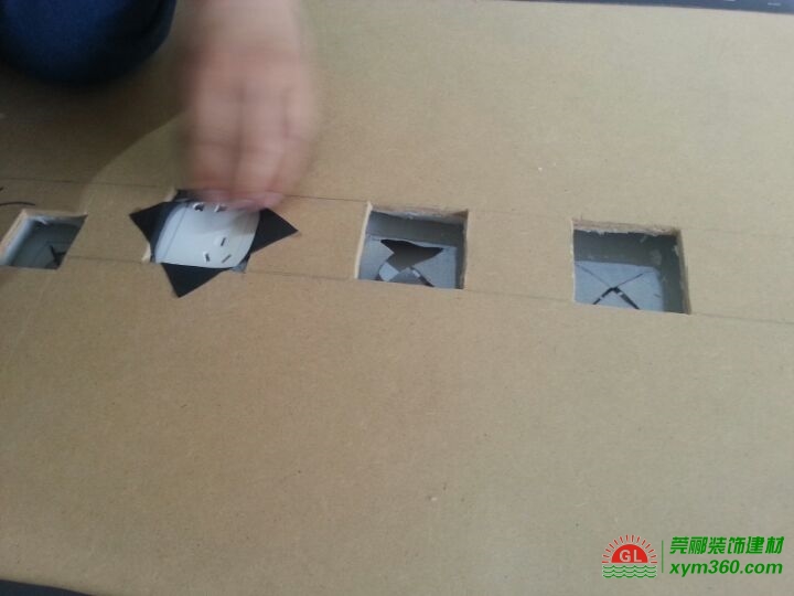 提前測量好插孔的位置和大小,經(jīng)過裁切,孔徑的大小和插排剛好吻合,操作這一步時(shí)要特別注意哦!
